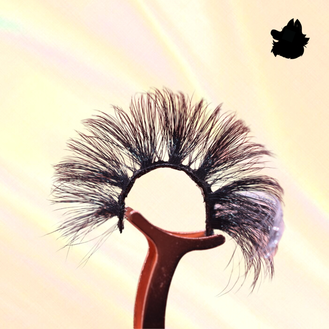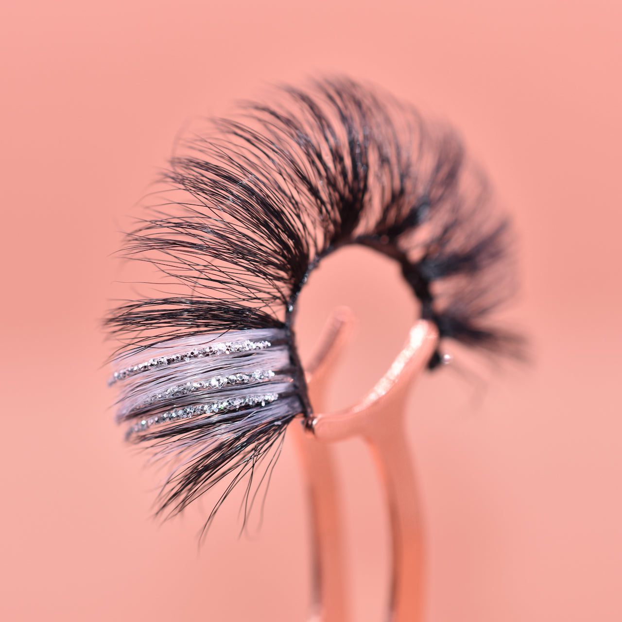 Step into a world of bold glamour with Cher 5D Mink Colored Lashes with Glitter! These lashes are designed to make a statement with their extra-long, thick, and fluffy 25mm length, creating a dramatic and voluminous effect. The luxurious white and silver sparkle adds a touch of sparkle to your eyes, giving them a mesmerizing, multidimensional look. Crafted with a flexible cotton, reusable black band, they’re comfortable, customizable, and easy to trim to fit your unique style.