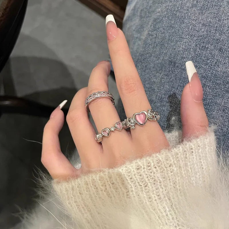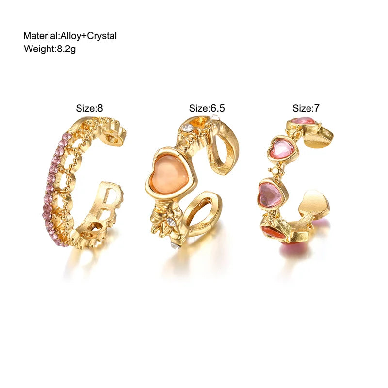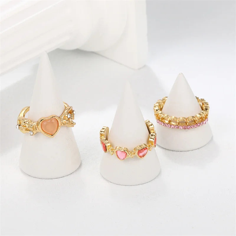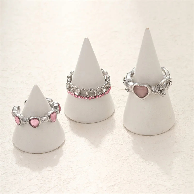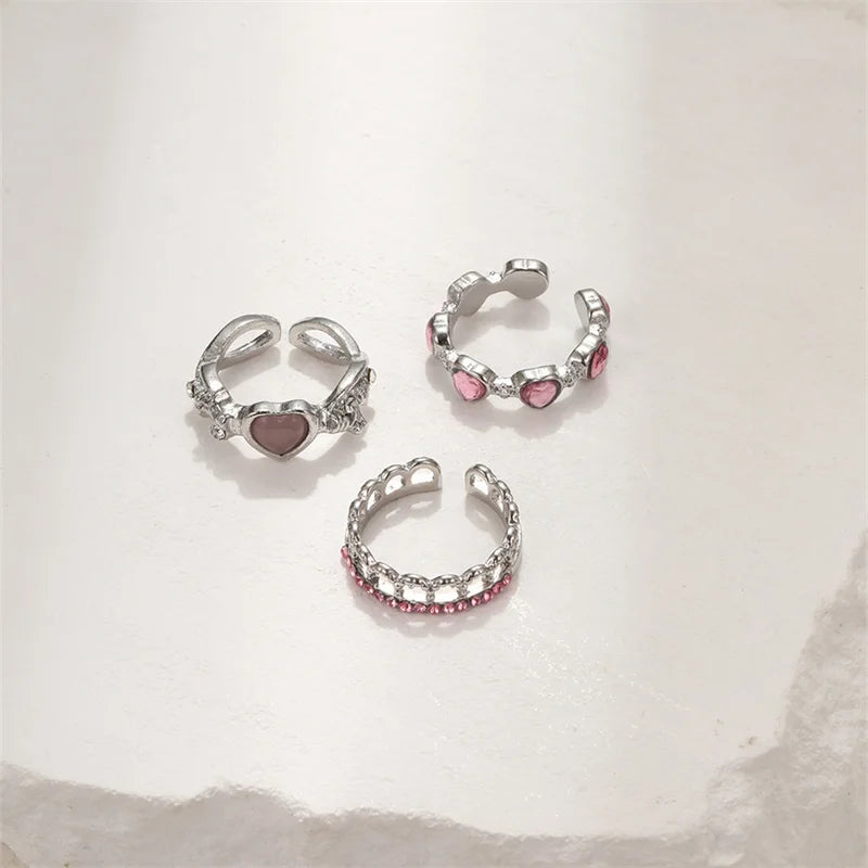 Stack up the sweetest love vibes with the Heartfelt Trio Ring Set, a dreamy 3-piece collection designed for the hopeless romantic with a Y2K edge! Each adjustable open-ring is crafted from shiny zinc alloy, featuring dainty heart-shaped zircon stones that sparkle with every move. Whether you wear them solo for a subtle charm or stacked together for a bold statement, these rings are the perfect mix of gothic glamour and girly sweetness.