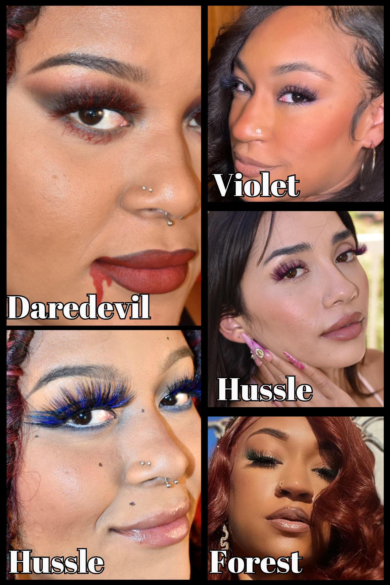 • Daredevil: A striking red and black blended open-eye lash with lengths ranging from 15mm to 20mm.