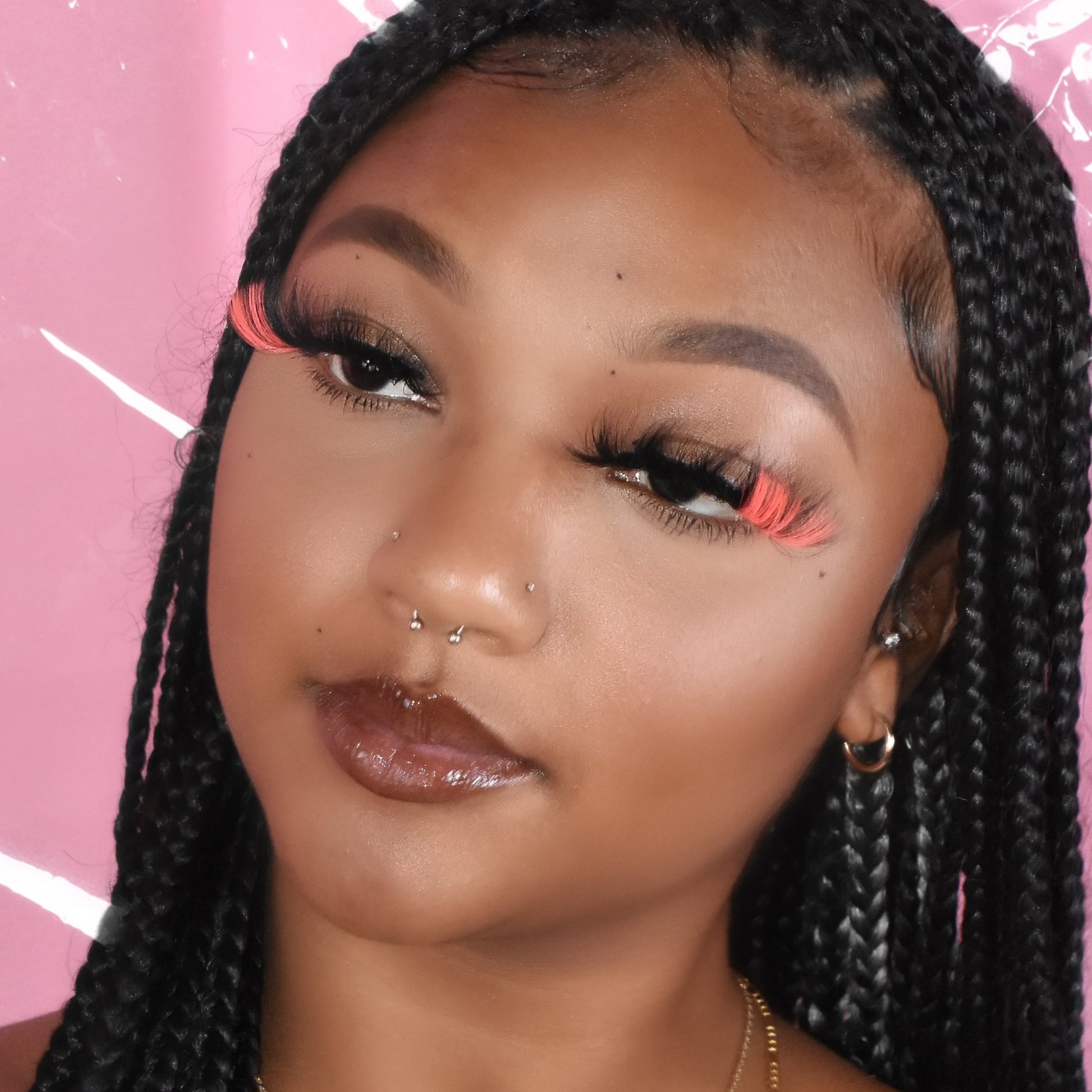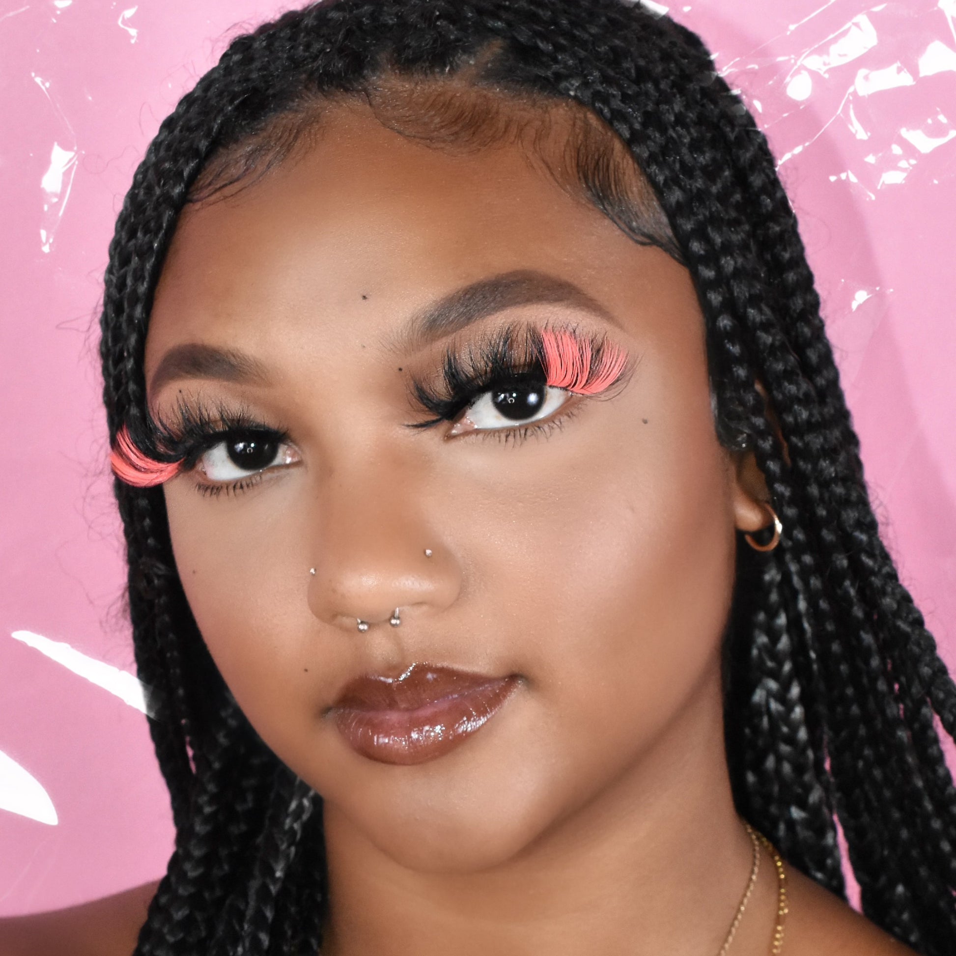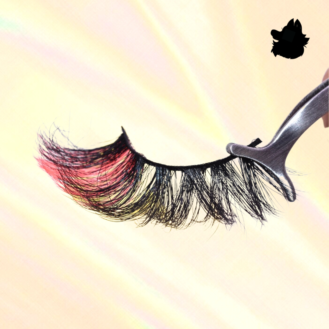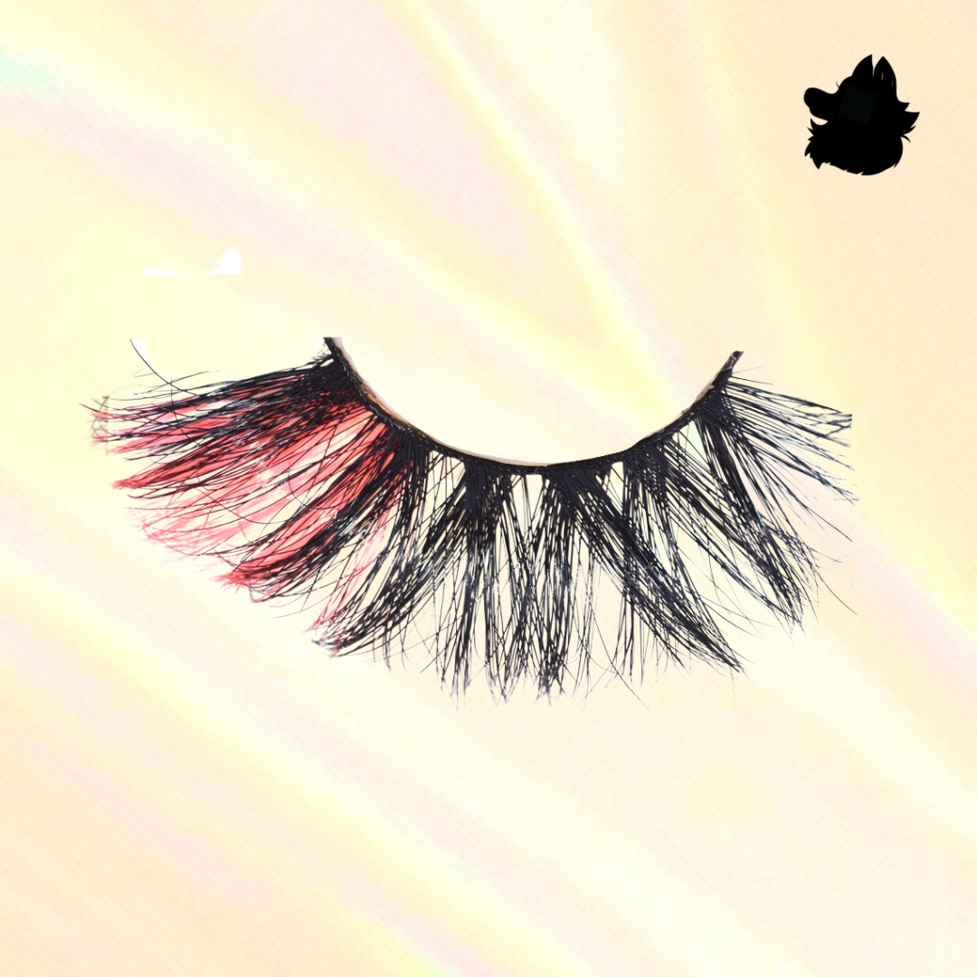 Gorgeous, mink-glue lashes with striking hot pink ends; 25mm in length, they create a 3D effect! Crafted with a special design using a flexible black band and cotton fibers.