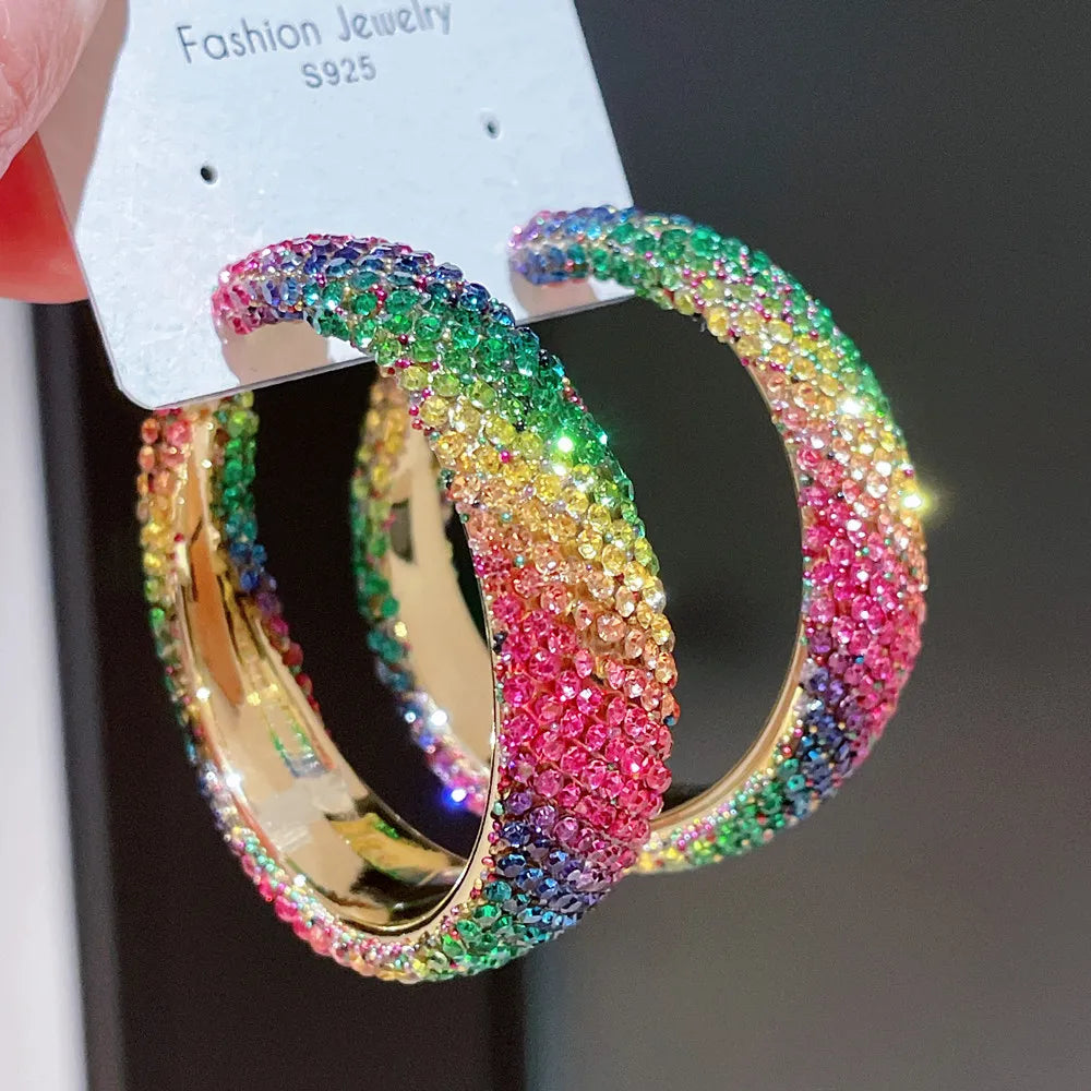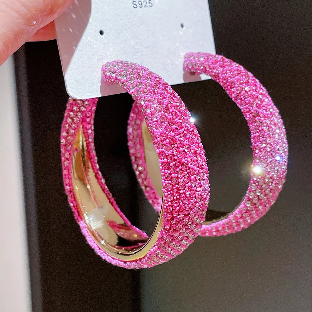 Turn heads and add some glam to your look with the Sparkle Queen Rhinestone Hoop Earrings! These oversized, shiny rhinestone hoops are the perfect statement piece for any fashionista. Whether you're dressing up for a wedding, party, or prom, these geometric round crystal earrings will instantly elevate your outfit and add a pop of sparkle.