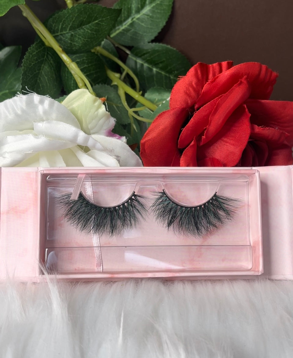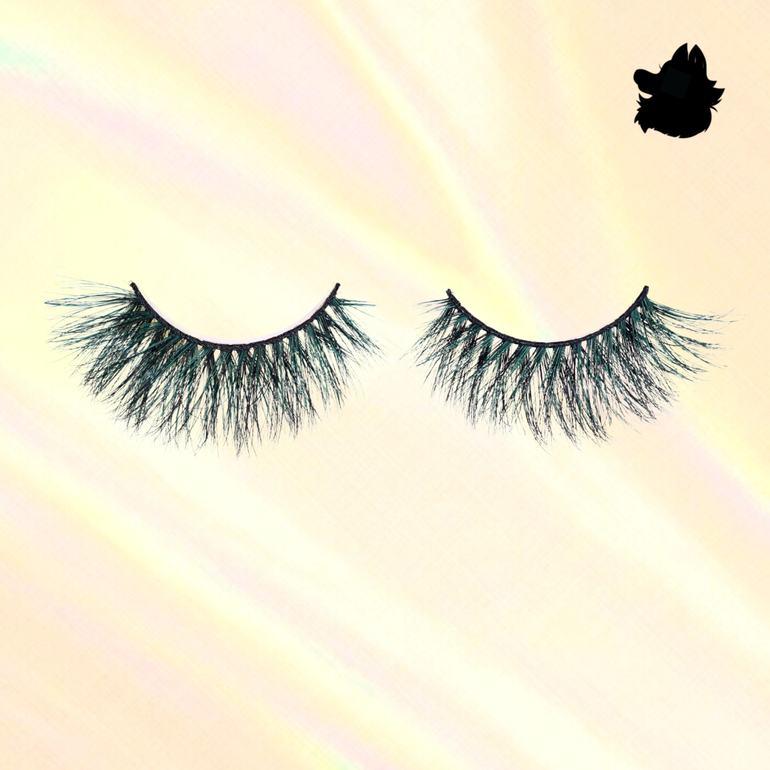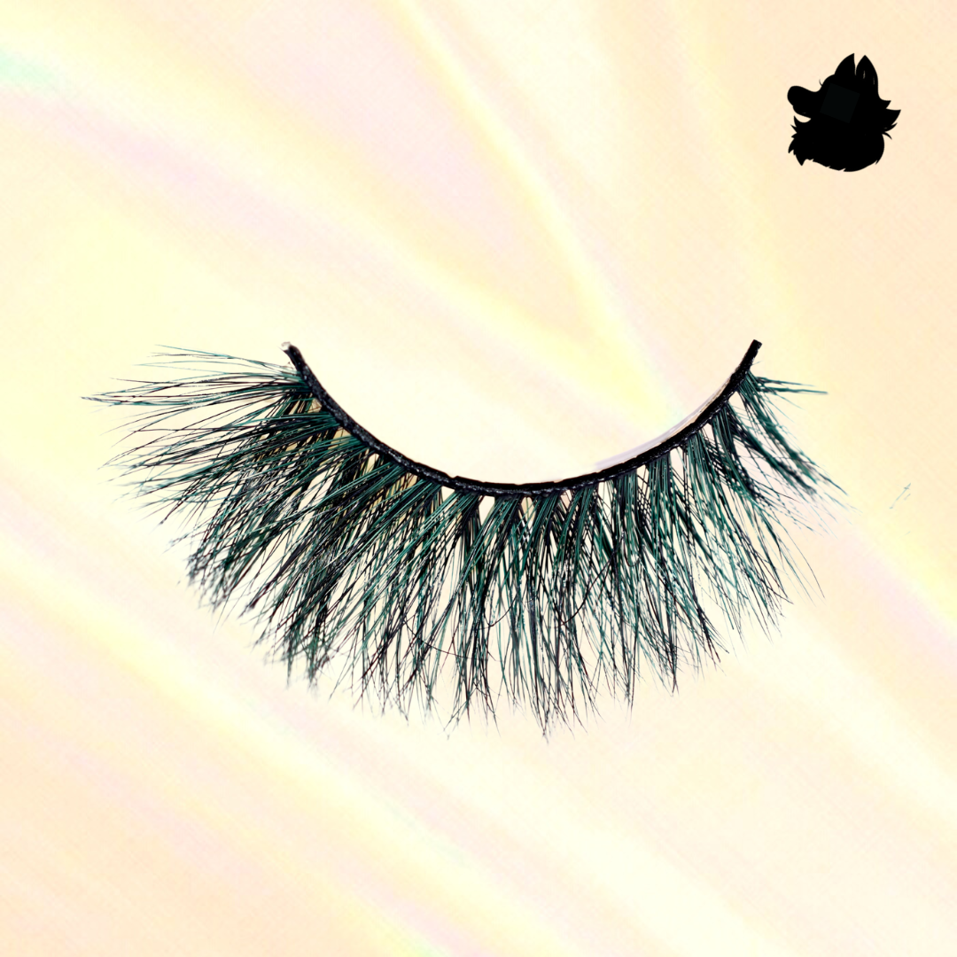 Experience the captivating 3D design of our special black and green colored, mink glue-on lashes! Feel the fluffy and wispy texture, measuring 20mm in length, all secured with a flexible, black cotton band!