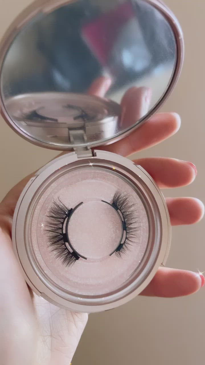 Housed in a sleek mirrored compact rose gold round case, Glisten keeps your lashes protected, organized, and ready to shine whenever you are.