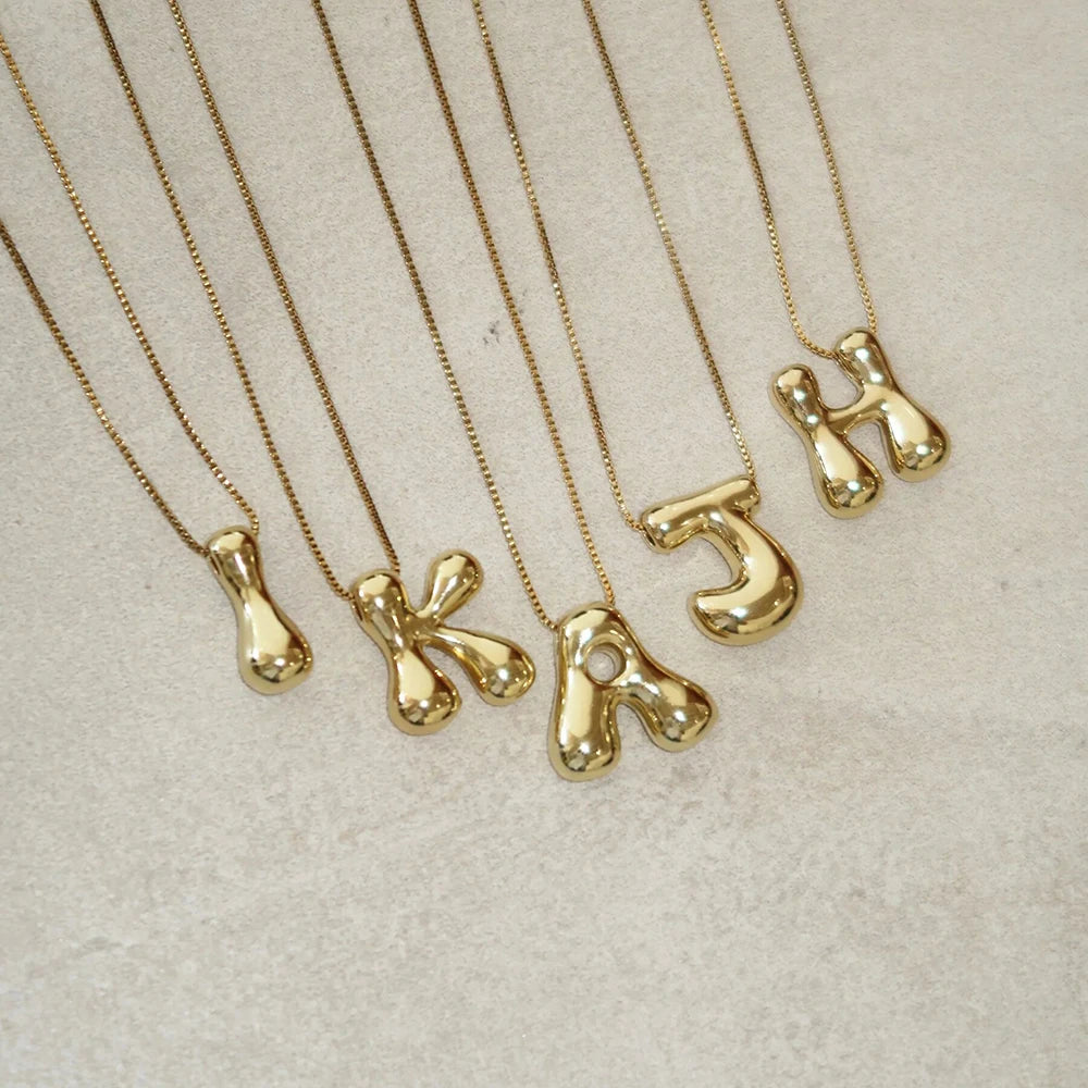 Make a statement with our Balloon Letter Chunky Necklace! This trendy gold-plated necklace features smooth stainless steel balloon-style letters, each representing a different initial for a personalized touch. The geometric design and chunky pendant make it a standout piece perfect for adding personality to any outfit.