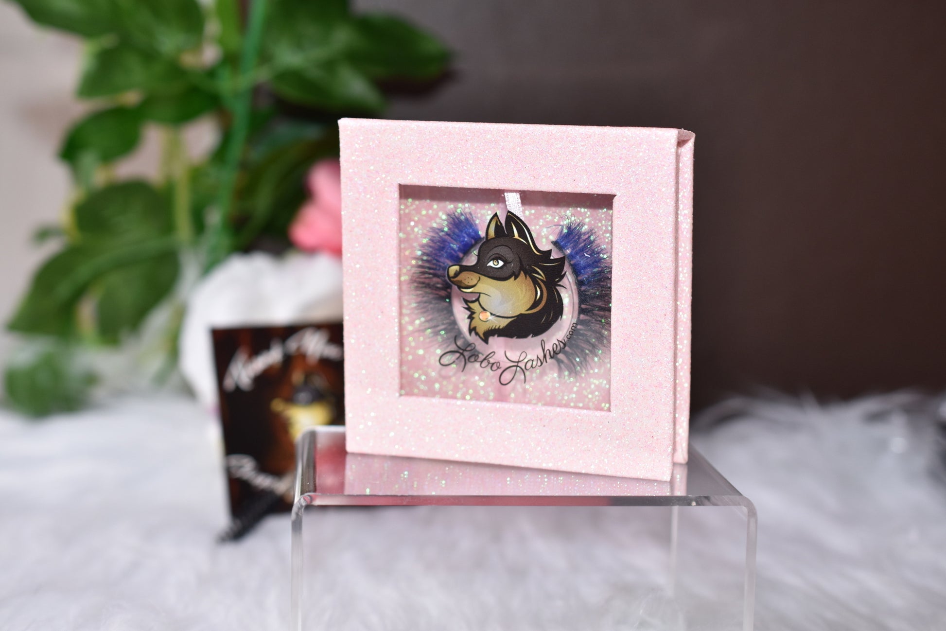 Comes in cute LoboLashes baby pink glitter square case.