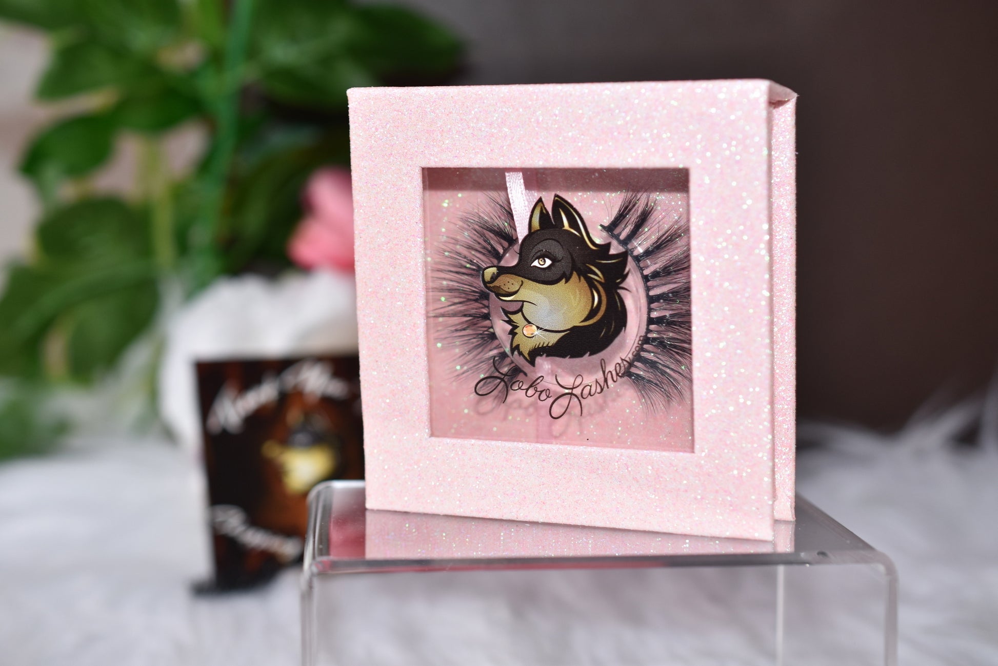 Housed in our adorable LoboLashes baby pink glitter square case that’s just as pretty as the lashes inside.