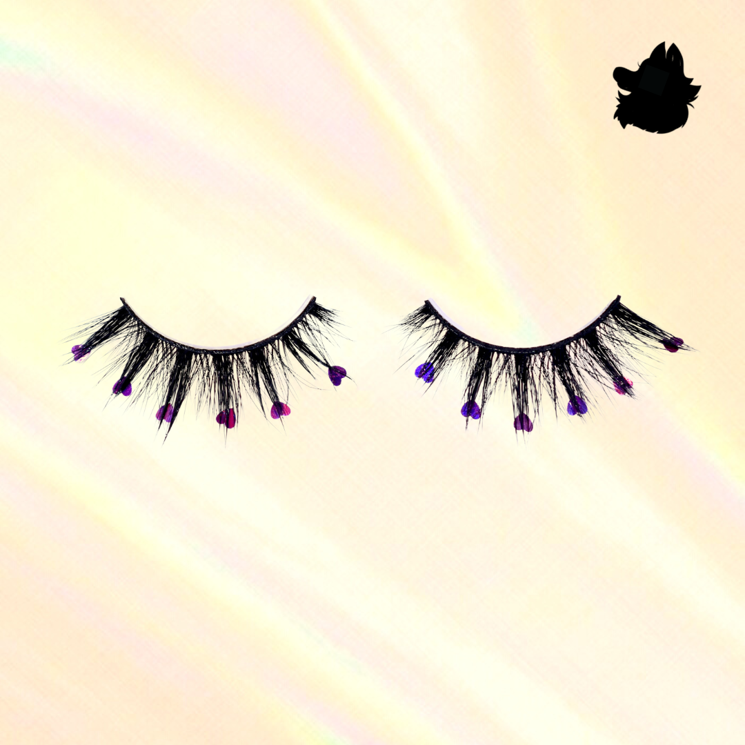 Transform your lash game with this dazzling glue-on duo! Mickey brings playful charm with tiny multicolored Disney-shaped sequins on the tips, while Love glows with metallic red, purple, and pink hearts for a dreamy romantic touch. Both styles are 14-15mm and stacked for extra volume and dimension!