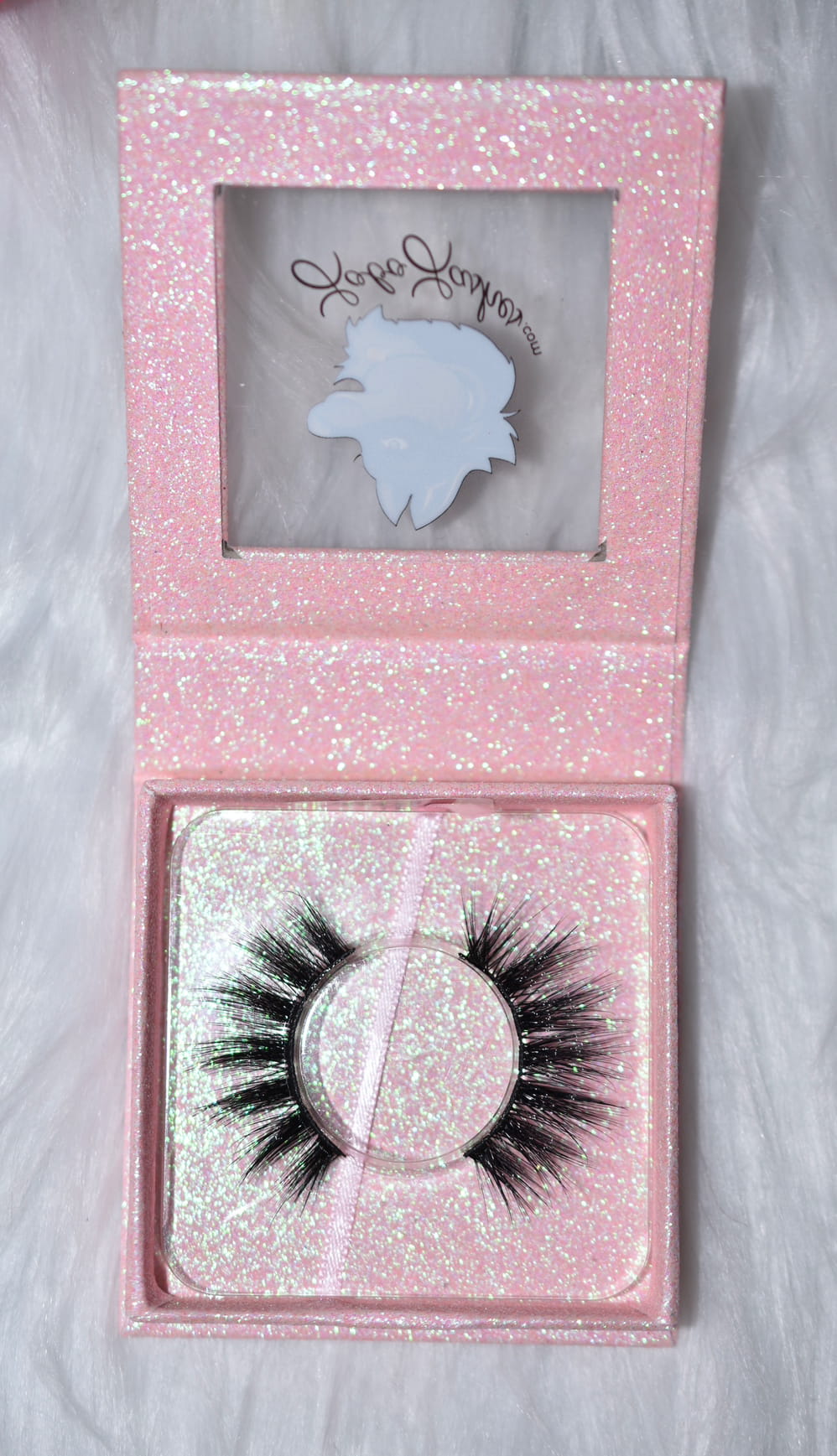 Comes in cute LoboLashes baby pink glitter square case.