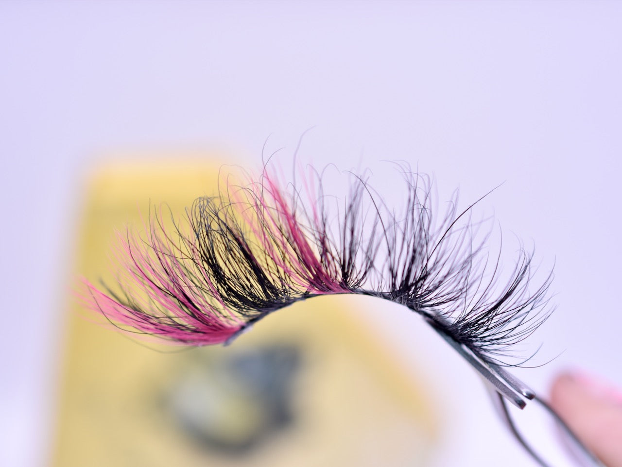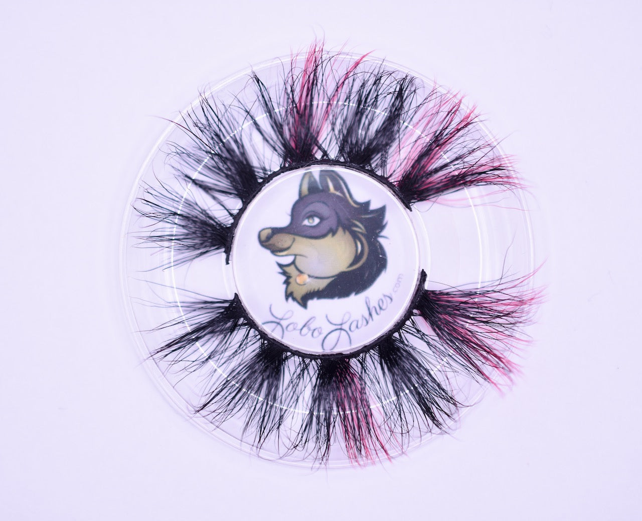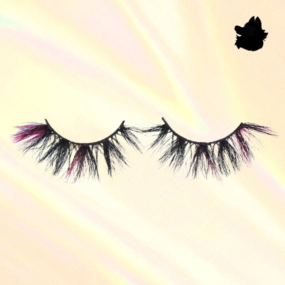 Up your lash game with 25mm colored, mink glue-on lashes! These bad babes come in black with two striking pink stripes, so you'll look paw-fectly fabulous. You'll look wild and wispy with their fluffy, cat-eye style and bendy black band. Plus, they've got a special 3D design that your fam will def notice.